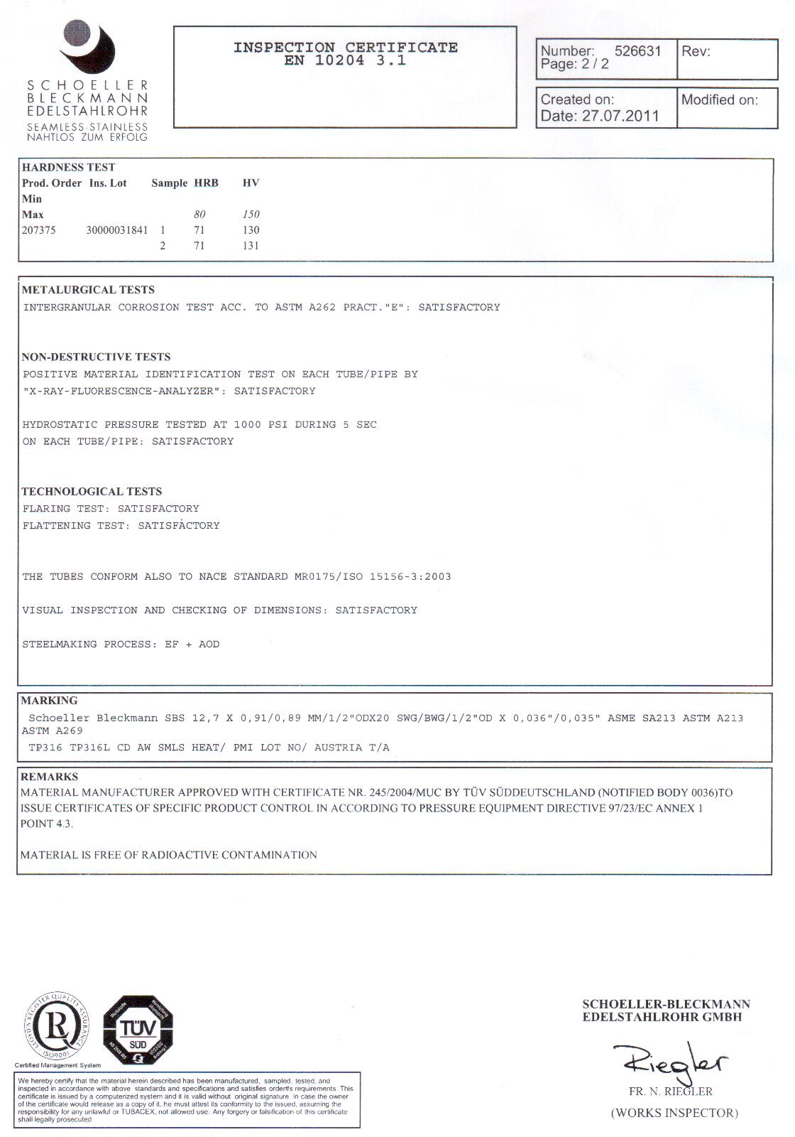 SUS316심레스성적서